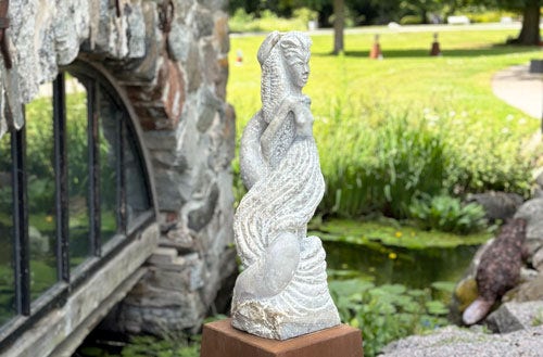 Curatorn Maria Duse, som leder utställningen för andra året i rad, visar oss runt i både galleriet i Stenkvarnen och den vackra slottsträdgården.